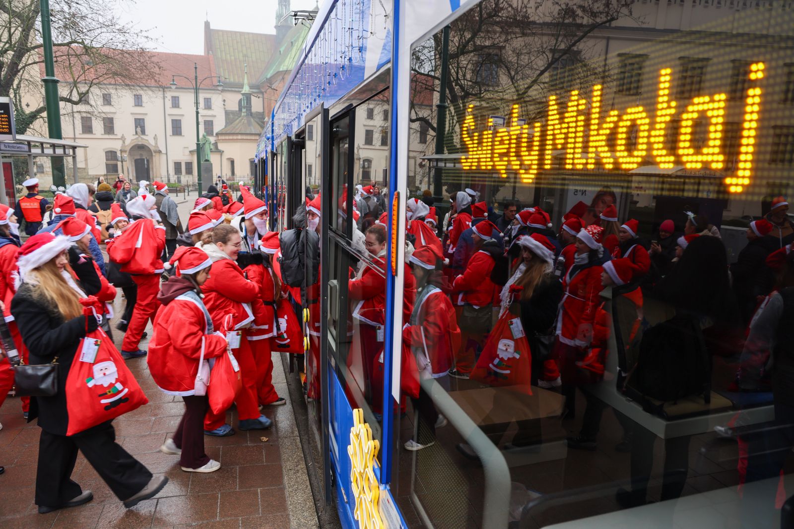 Ale niezale¿nie od tego, w tym wyj±tkowym dniu przez kilka godzin po Krakowie kursowa³ ¶wi±teczny tramwaj MPK z Miko³ajem na pok³adzie. Wyj±tkowy pasa¿er rozdawa³ najm³odszym s³odkie upominki. Miko³aj rozpocz±³ swoj± podró¿ ¶wi±tecznym tramwajem MPK w Nowej Hucie. Punktualnie o godz. 12.30 wyruszy³ z Placu Centralnego im. Ronalda Reagana w kierunku centrum miasta. Stamt±d tramwaj pojecha³ przez rondo Czy¿yñskie, al. Jana Paw³a II, ul. Mogilsk±, przez rondo Mogilskie, ul. Lubicz, Westerplatte, pl. Wszystkich ¦wiêtych do pêtli na Salwatorze. Nastêpnie ¶wi±teczny tramwaj z Miko³ajem kursowa³ z pêtli „Salwator” do „Dworca Towarowego”, przez pl. Wszystkich ¦wiêtych, ul. Westerplatte i Pawi±.